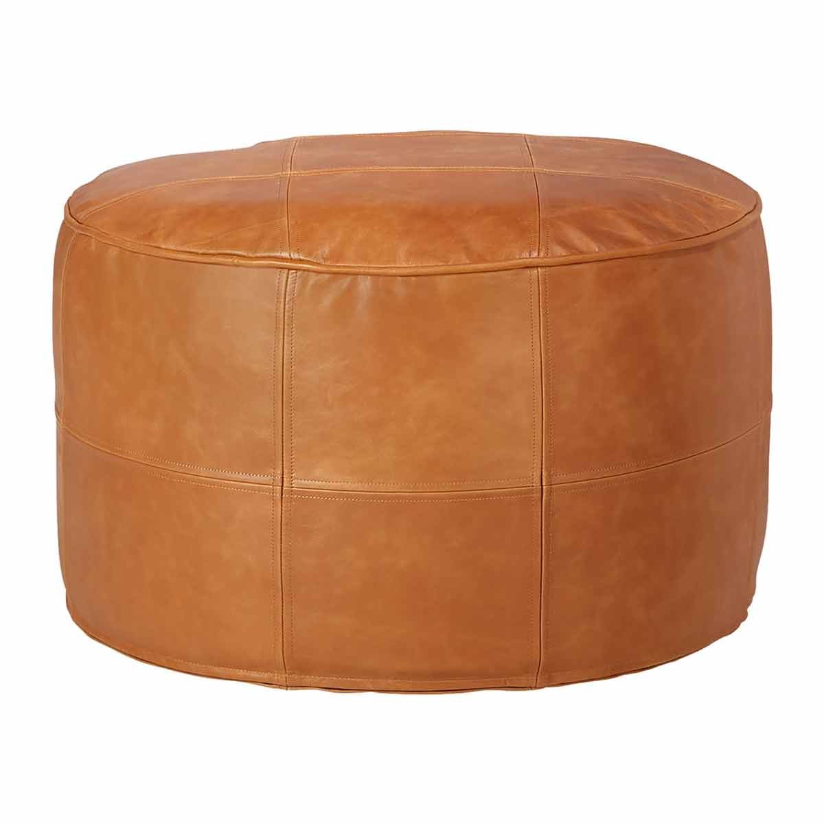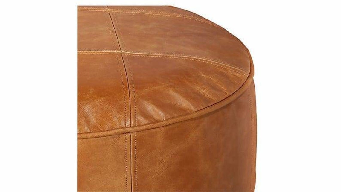 Round Moroccan Genuine Leather Ottoman Pouf