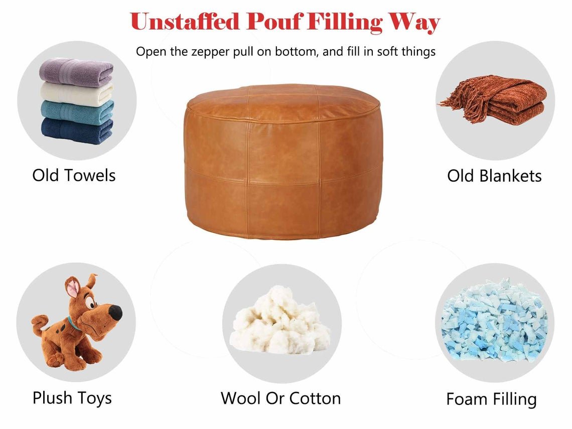 Note: the pouf shipped unstuffed, but you can use the polyester fiber filling or the cotton, or you can also use old towels to make it firm.